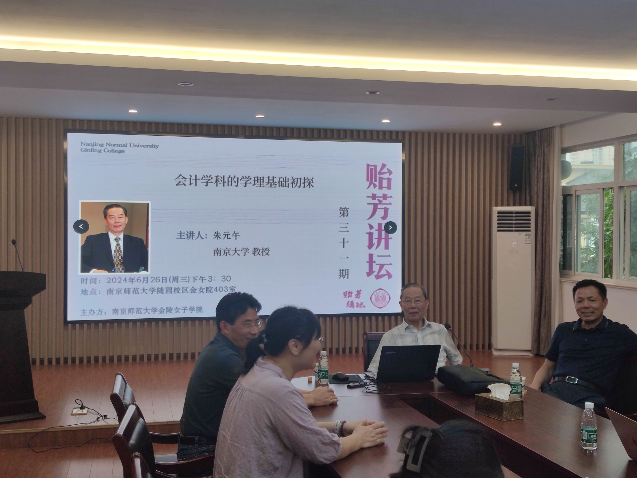 在随园校区金女院楼403会议室举办贻芳讲坛第31期学术讲座,南京大学朱元午教授担任主讲人,本次主题是“会计学科学理基础初探”。讲座由金女院特聘院长杨雄胜教授主持,会计与财务管理系教师、22级和23级会计学硕研究生参加。