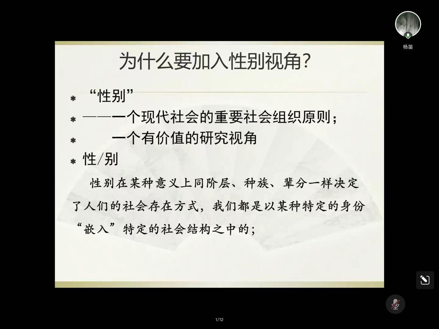 在此基础上,杨笛老师重申了性别研究作为跨学科、多视野及交叉性的研究类型,其最终目的是突破单一的、霸权的研究路径与框架。因此在研究中加入性别视角的目的是拓展研究视野与空间,而非将研究窄化为单一的男性视角、女性视角或性别视角。因此,既能够赋研究以性别视角,又能够超越性别框架的研究,才是性别研究真正渴求与希冀的。