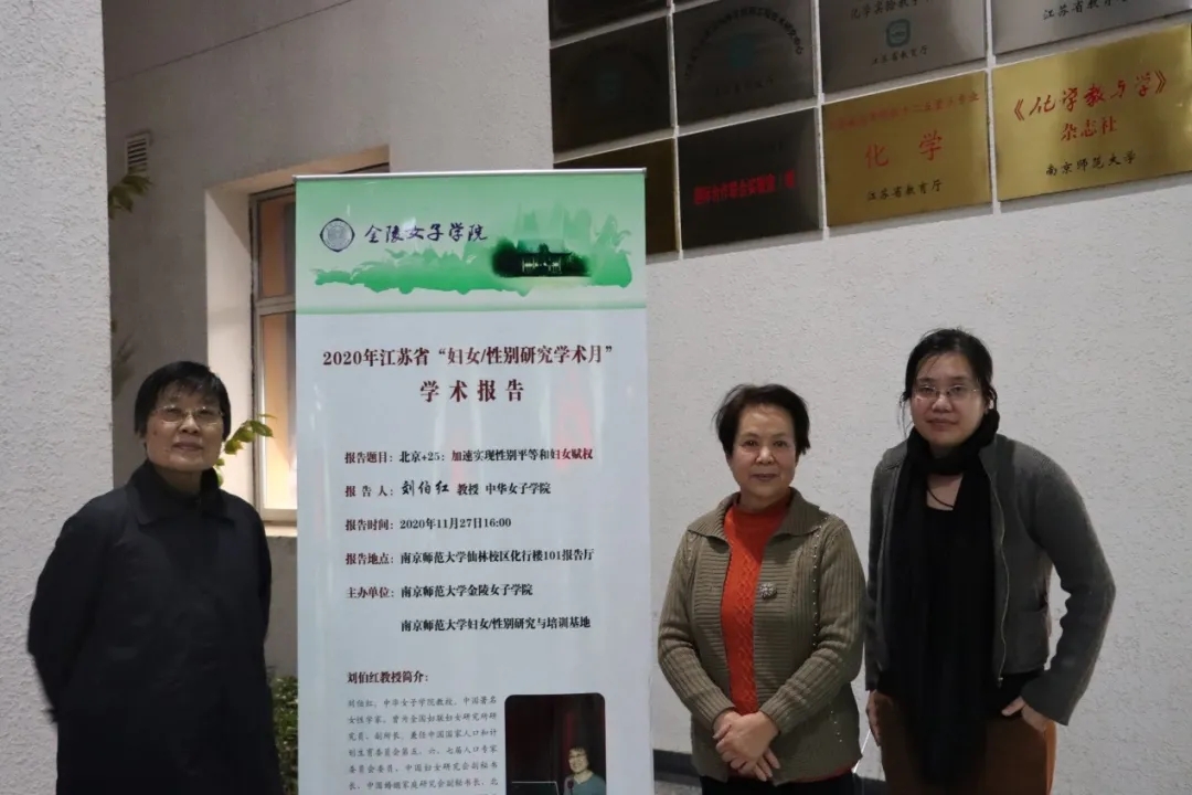 活动结束后,刘伯红教授、金一虹教授以及金女院杨笛老师共同合影留念。