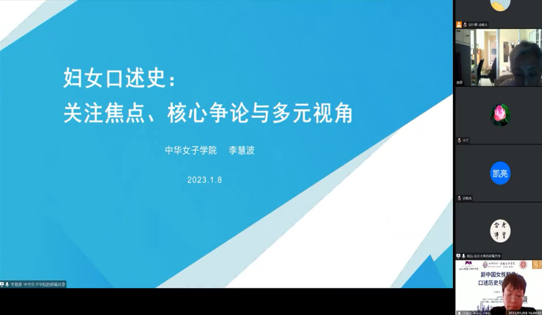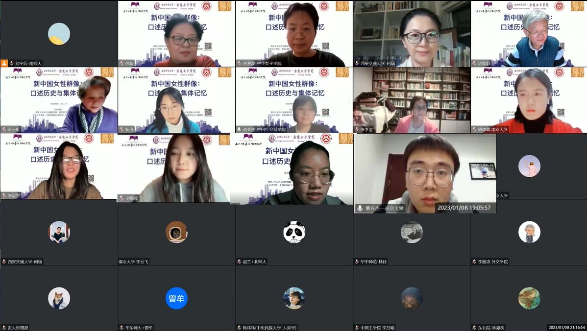 等的三十名专家学者就女性口述史的实践、研究以及相关的方法及理论进行了分享与热烈的讨论,会议从早上8:30至21:20持续近13个小时,300余位关注女性口述史研究的同仁线上全程参与会议。研究对象在历史情境的呈现、观点间的碰撞、激情与理论思考相互交融,使这一工作坊精彩纷呈。