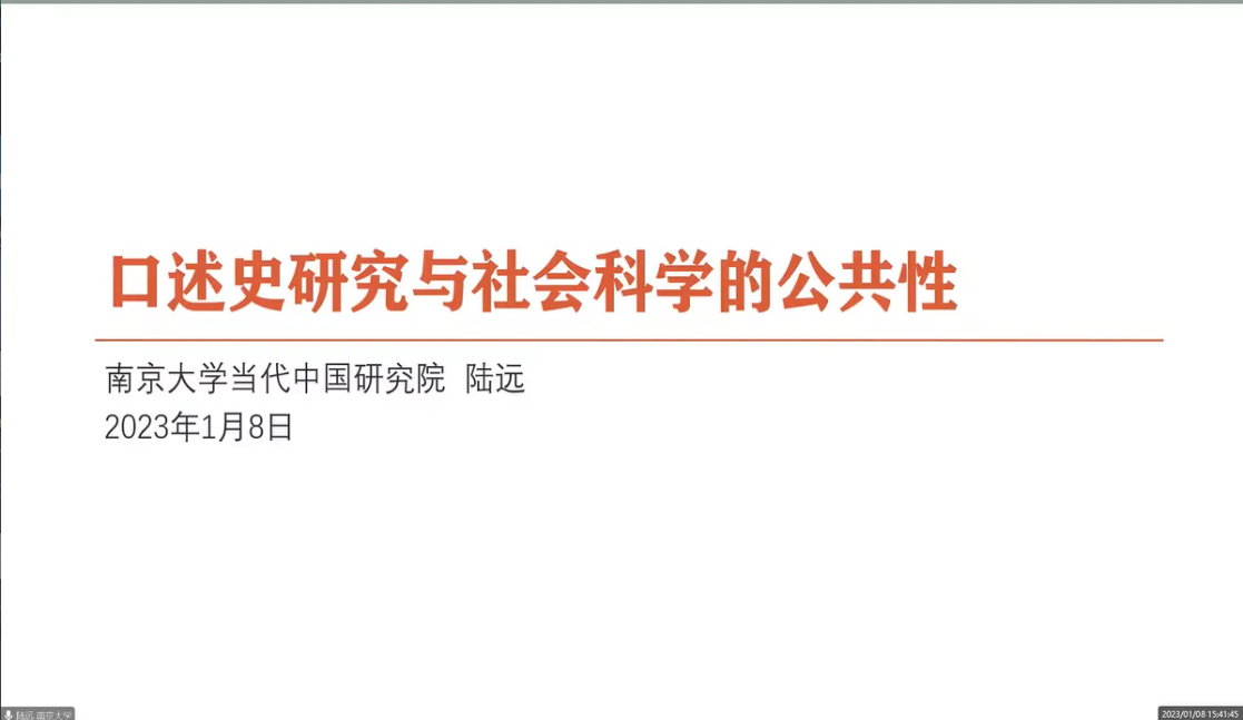 第四单元是学科与方法视野下的口述史研究,由《妇女研究论丛》副编审史凯亮老师主持。 南京大学当代中国研究院院长助理陆远博士以“口述史研究与社会科学的公共性”为题,从选题、访谈、书写和传播角度探究口述历史的知识生产过程与公共性的生成。他认为:口述史的实践唤起访谈者以及口述人在更为宏大的历史、社会变迁中观照个体生活,同时在大的社会背景下反观个体,建立社会关怀的观念;口述历史具有抵抗遗忘的功能,而遗忘过去正是“现代性”主要特征之一;口述历史可以为重建社会科学研究与公共生活世界的紧密联系、建立能务实有担当的“公共社会科学”提供具有可行性的路径。