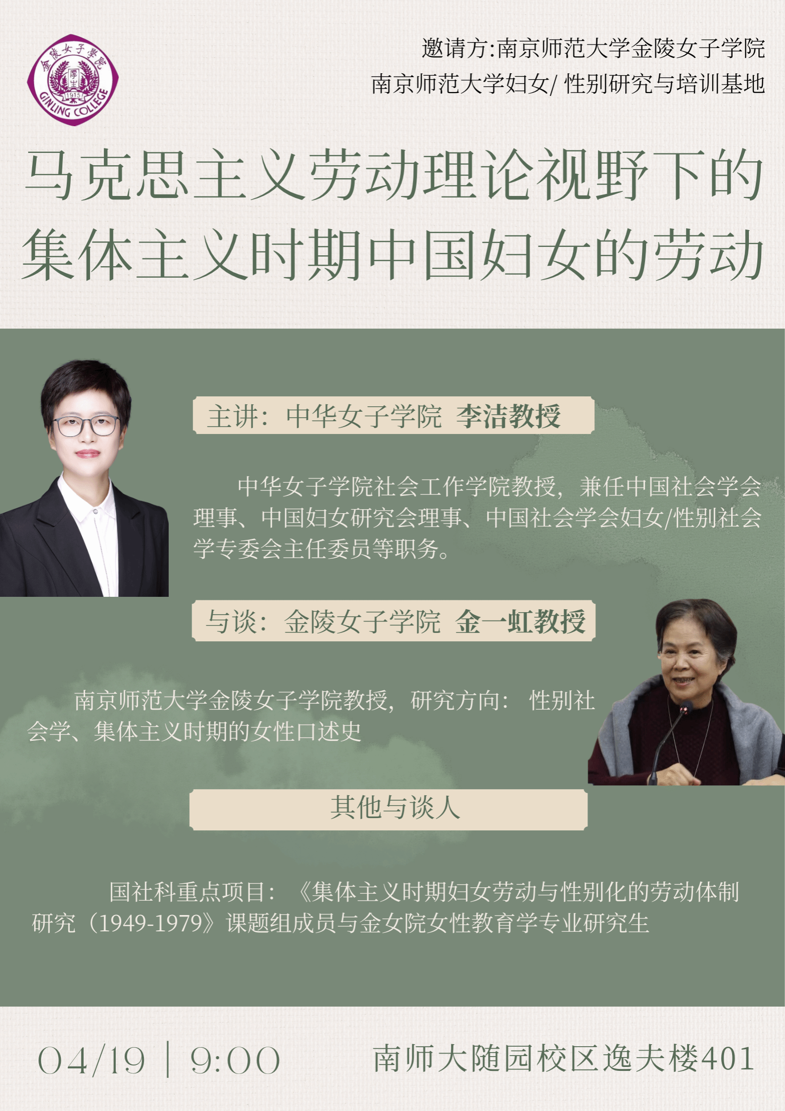金女院金一虹教授邀请,就金教授主持的国家社科基金重点项目:《集体主义时期妇女劳动与性别化的劳动体制研究(1949-1979》研究中的重要理论议题进行对谈式焦点研讨。李教授博士毕业于清华大学社会学系,主要从事“社会再生产理论”视角下的性别、劳动和家庭研究。此次研讨由李教授主讲,课题组负责人金一虹与谈,课题组成员杨笛副教授、南京大学张震宇博士和金女院女性教育学硕士们参加。