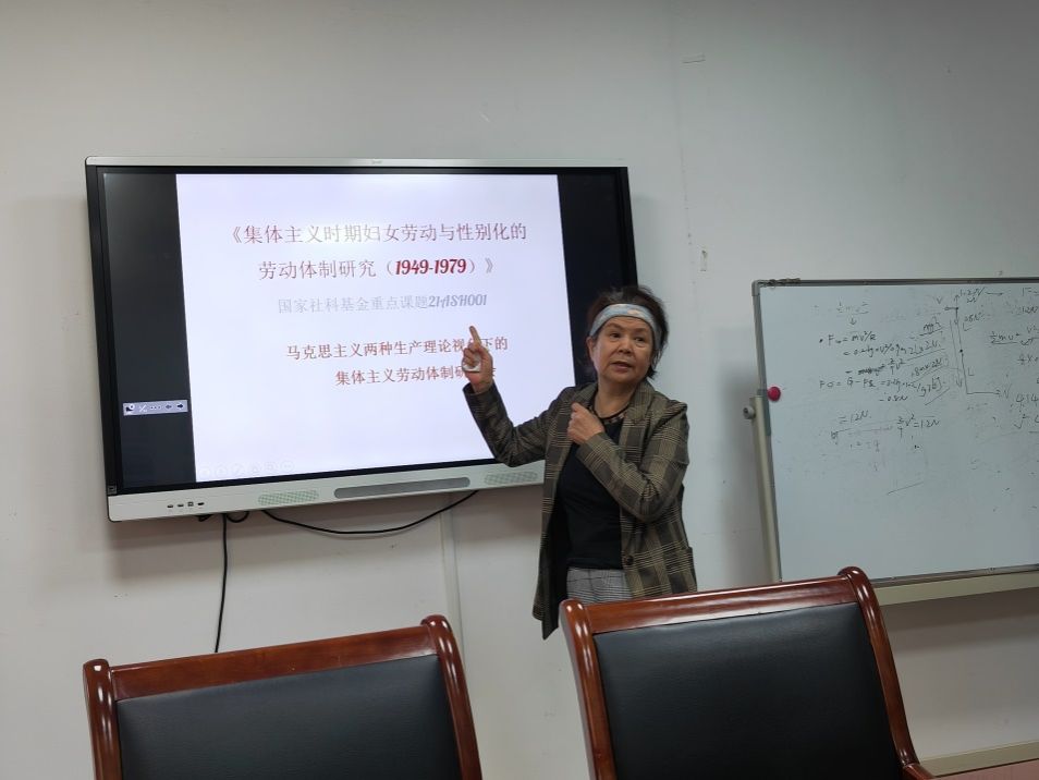 金一虹也向大家汇报了该课题组在2023年国家社科基金管理中期评估时已做的工作:已完成包括对山西昔阳大寨大队铁姑娘队、大庆油田女子采油队、陕西长城女子治沙连等13个先进女子集体、女劳模、女子专业队队员的口述史、访谈75人,访谈录音时长125.5小时,录音整理文字171.9万(后面仍有延续),实地考察的女子先进集体物质性的纪念馆、基地7处;2021-2023年间为中国社会学年会性别专业委员会组织的全国性会议提供报告5篇,期刊发表论文一篇。此外还做了相关文献资料收集的。