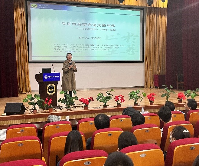 贻芳讲坛第十三期在随园校区贻芳报告厅顺利举办。百家乐平台成功邀请东南大学经管百家乐平台博士生导师、副教授王亮亮为全体师生带来一场精彩讲座——实证税务研究论文的写作与发表:基于个人的“经验”证据。此次讲座由金女院特聘院长杨雄胜教授邀请、会计系主任李芸主持。