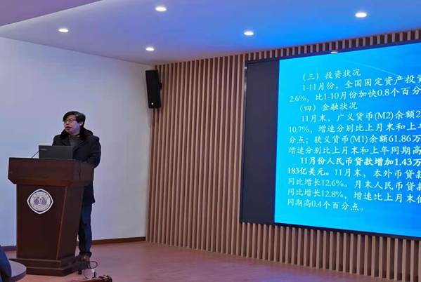 接下来,刘教授通过一些不同机构组织最新发布的预测数据为大家分析了当前国际经济金融形势,从工业生产、消费状况、投资状况、金融状况以及财政状况五个方面结合最新统计数据为我们详细分析了我国当前经济金融形势。