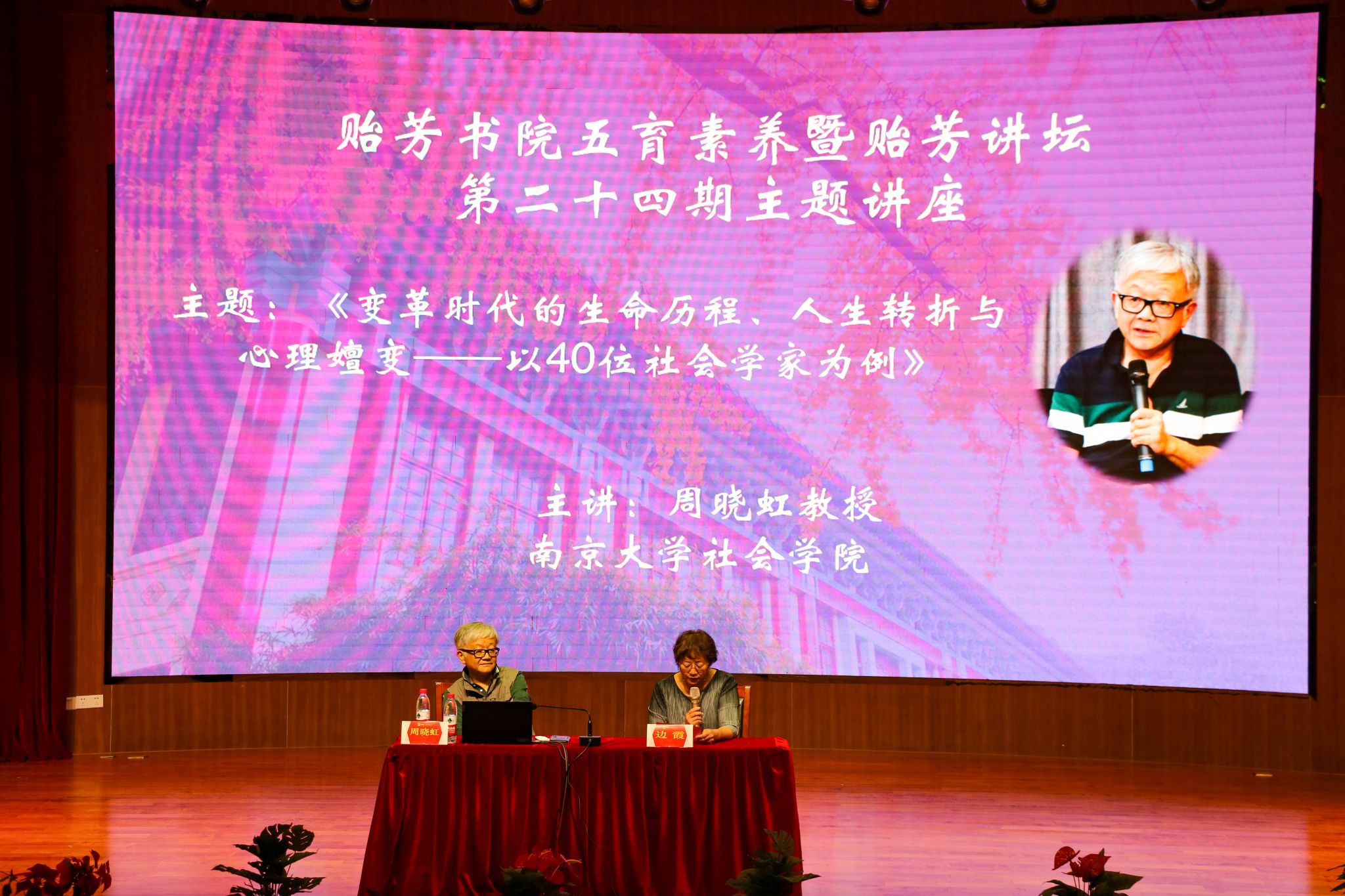 南京大学社会百家乐平台原院长、人文社会科学资深教授、国家社会科学基金学科规划评审组专家周晓虹教授受邀为贻芳书院四期、五期全体学员作了主题为“变迁时代的生命历程、人生转折与心理嬗变——以40位社会学家为例”的专题讲座。本次讲座由金女院院长边霞主持。