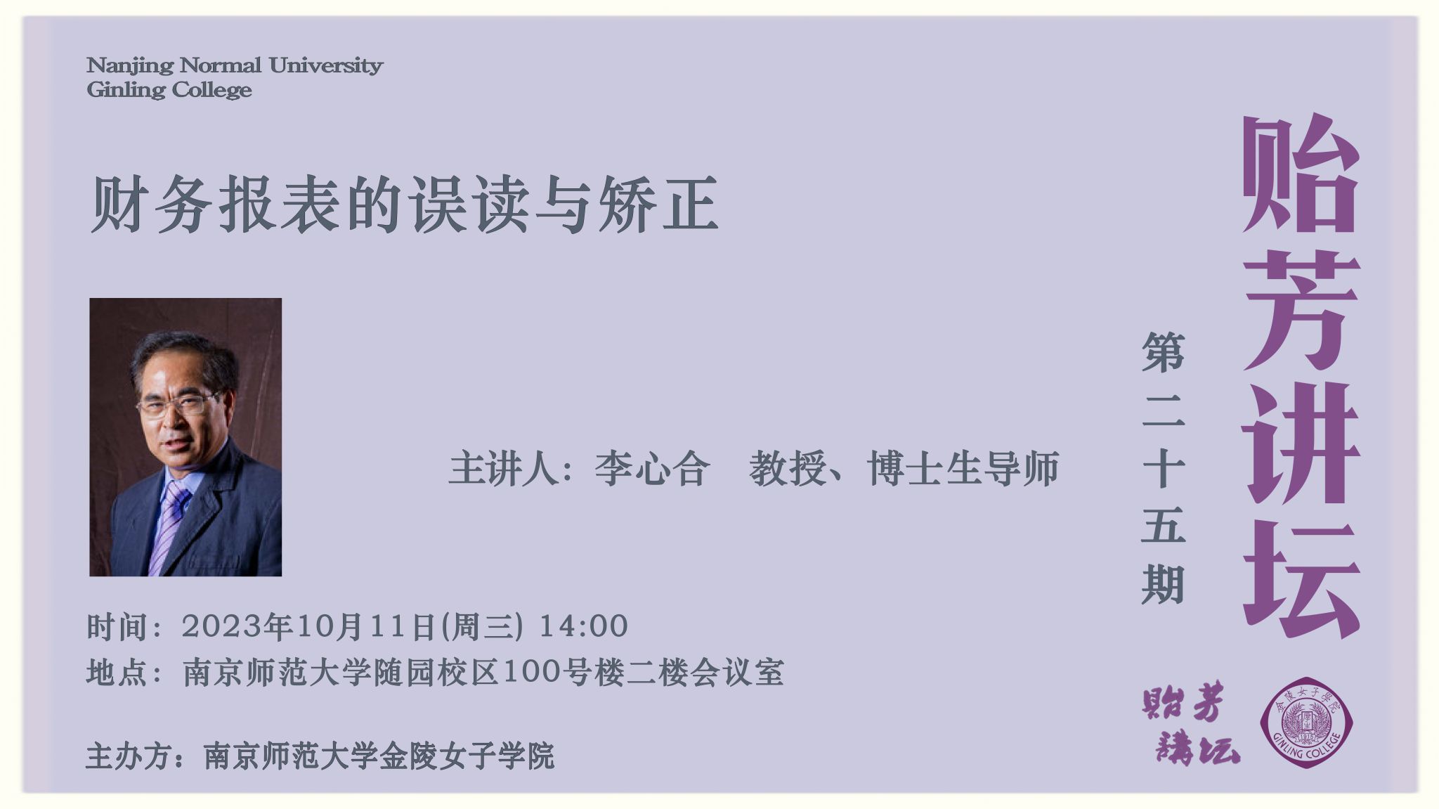 2023年10月11日下午,百家乐平台 贻芳讲坛第25期学术讲座在随园校区100号楼二楼大会议室举行。本次讲座由百家乐平台 财务学首席教授李心合主讲,主题是《财务报表的误读与矫正》。百家乐平台 会计与财管系教师、会计学硕、会计专硕参加了本次讲座。