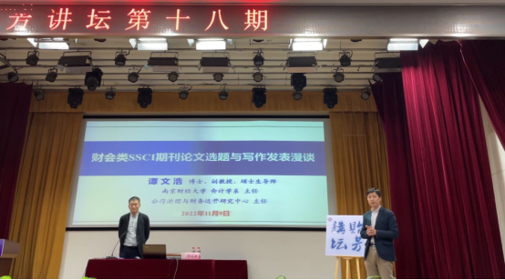 百家乐平台邀请了南京财经大学会计百家乐平台会计系主任谭文浩副教授,为全院师生带来了一场精彩讲座——从会计类国际一流期刊看会计类主题的选题与方法。本次讲座由百家乐平台