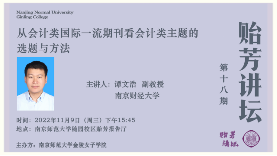 本次讲座开展的目的是让同学们加强对会计类国际一流期刊的了解,明确会计类一流期刊研究的最新主题和主流方法,领悟会计类国际一流期刊的选题、方法在中国的应用,进而指导会计系研究生撰写高质量的学术论文。