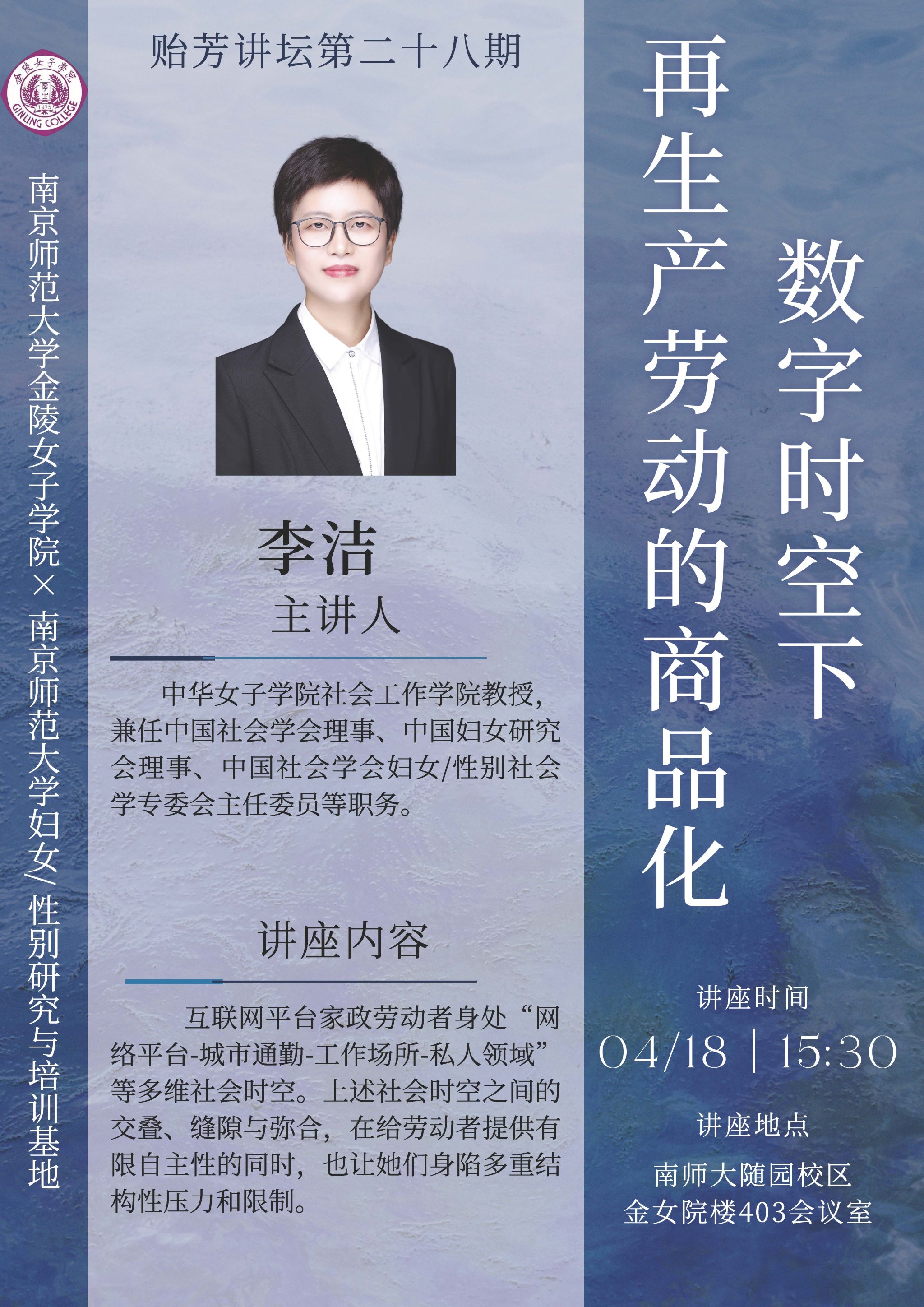 妇女/性别研究与培训基地邀请到了李洁教授开展题为“数字时空下再生产劳动的商品化”的讲座,活动于百家乐平台