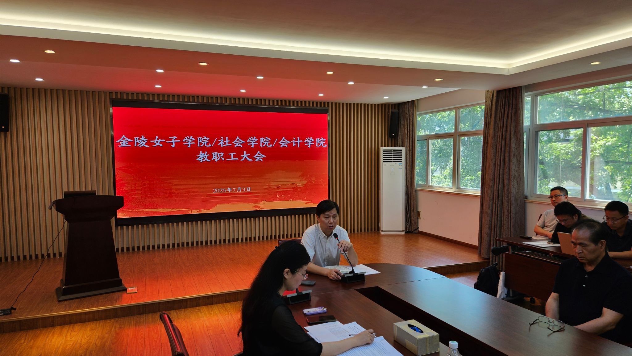会议分两个阶段进行。第一阶段,封思贤院长代表百家乐平台领导班子对百家乐平台2025年春季学期整体工作进行了总结,肯定了在教育教学、科研创新、社会服务和国际化等上取得的成果,感谢全体教职工的辛勤付出。他表示,希望全院教职工再接再厉,充分利用假期深入思考,如何提高科研、教学等能力,立项建设高级别的教科研项目,带领学生参加高级别的比赛项目,取得优异的成绩等。为秋季学期工作做好充分准备,以新的更大作为进一步推动百家乐平台高质量发展。