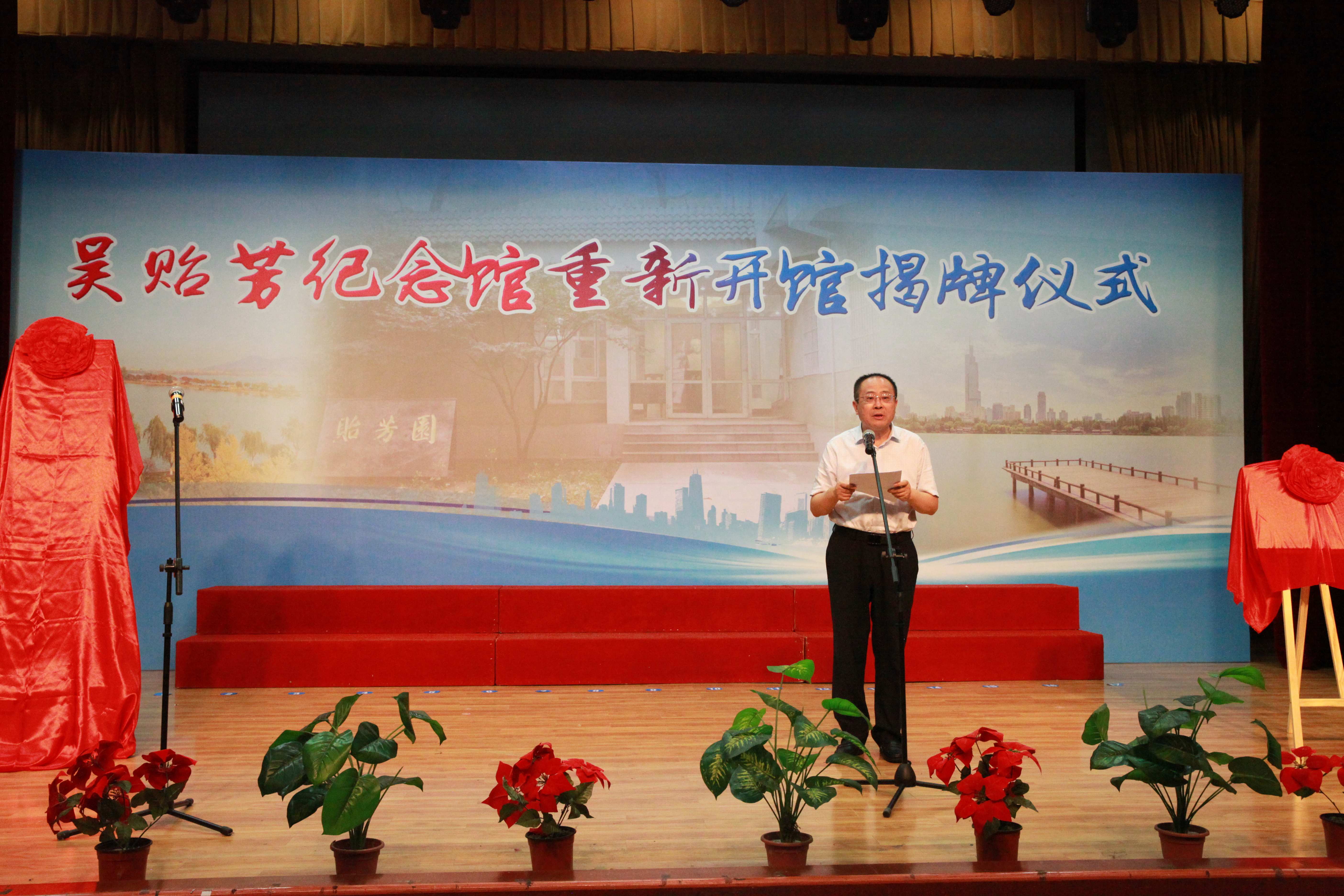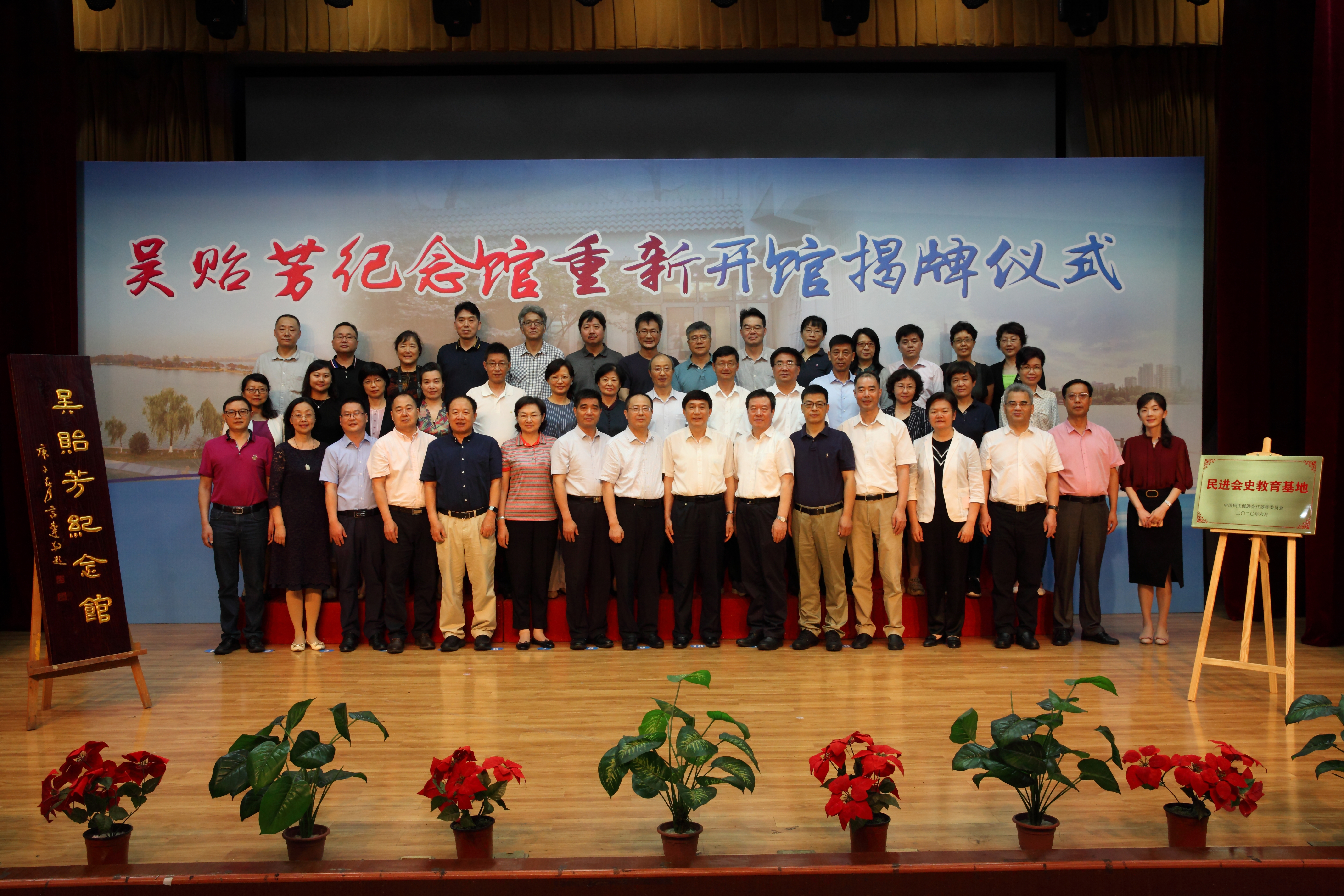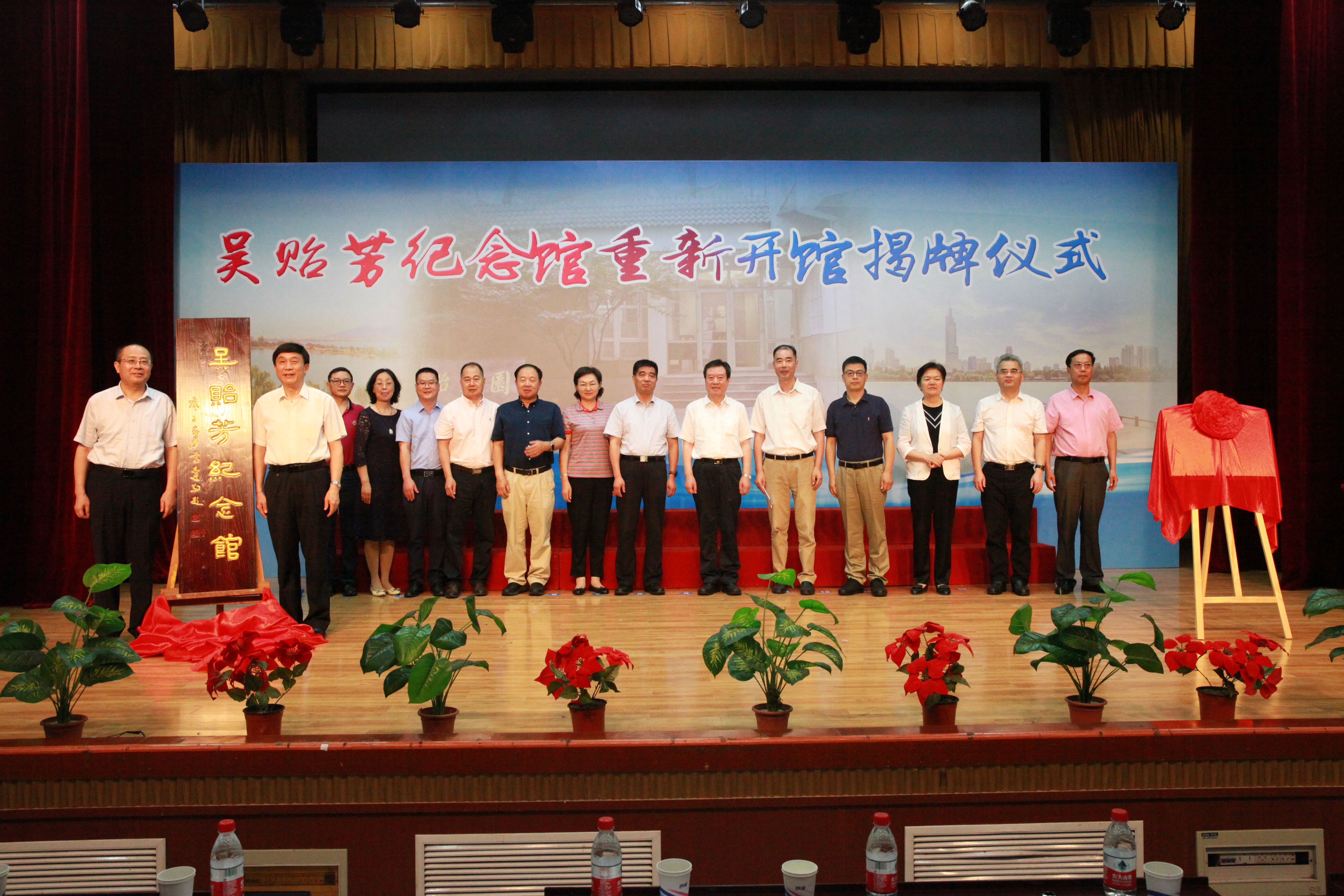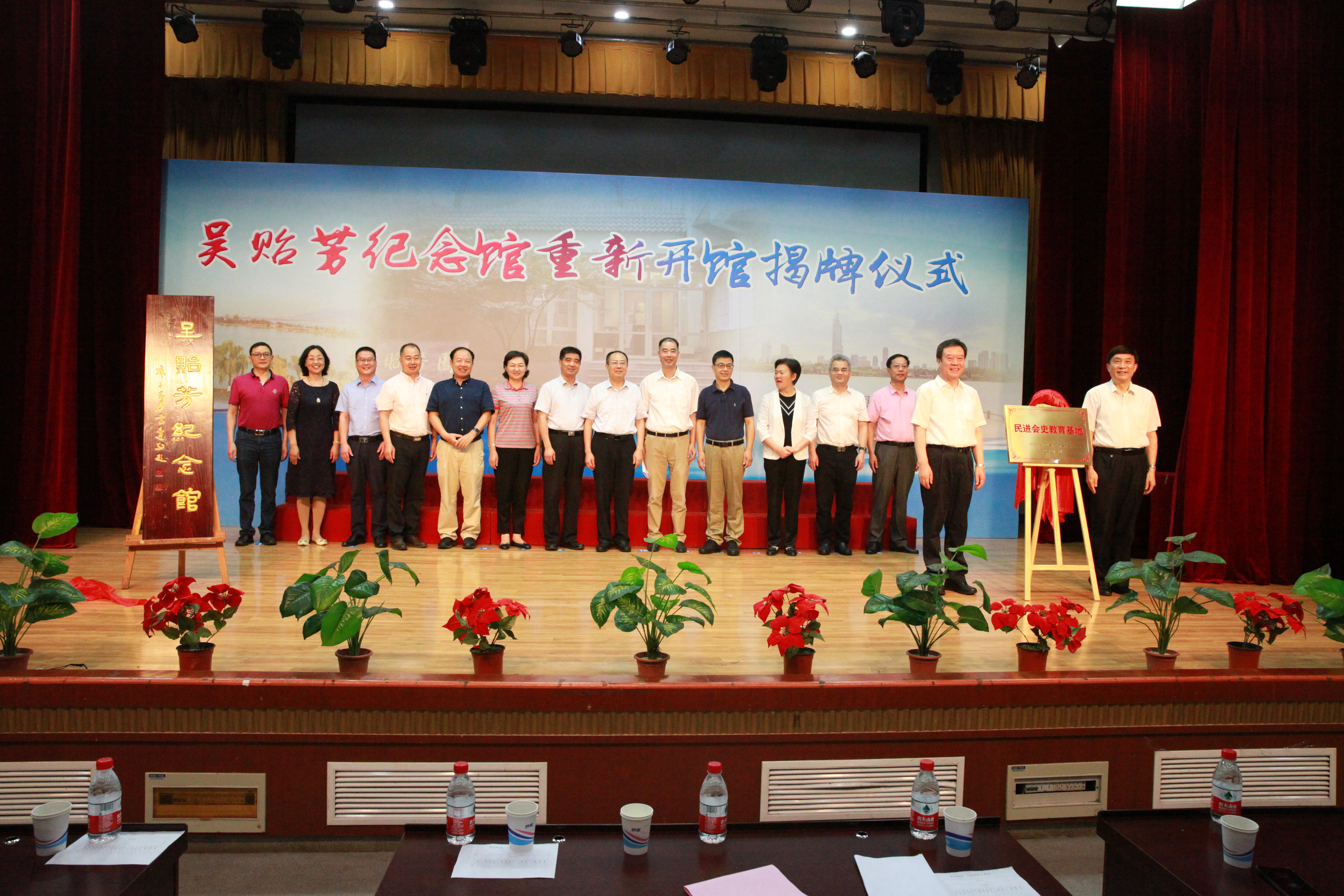 校党委书记胡敏强与民进江苏省委主委朱晓进共同为吴贻芳纪念馆重新开馆揭牌,江苏省委统战部副部长徐开信与民进江苏省委主委朱晓进共同为吴贻芳纪念馆“民进江苏省委会史教育基地”揭牌。