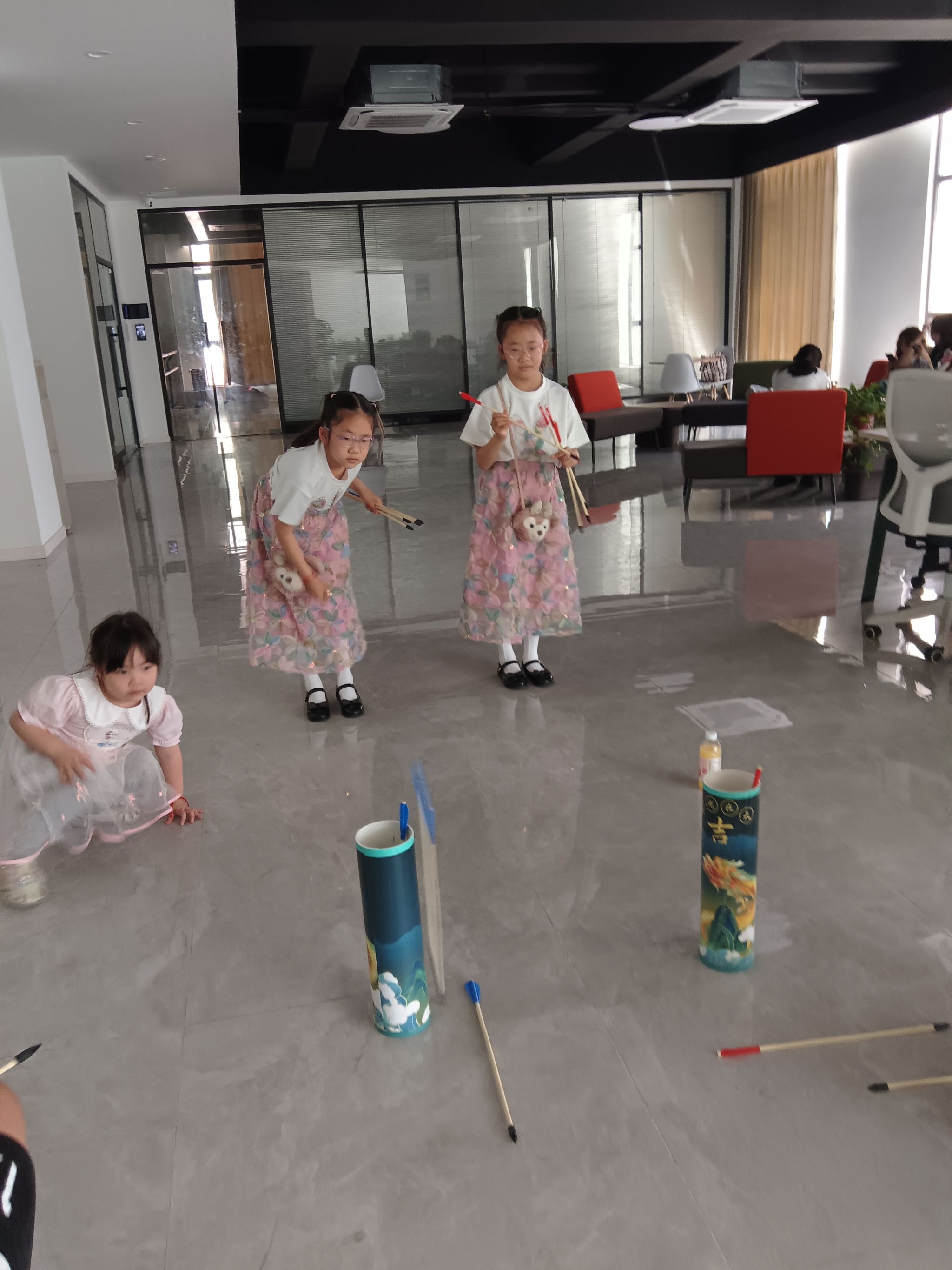 最后,孩子们在大学生志愿者的指导下开展了端午节传统游戏活动:投壶,射五毒,画龙点睛,捡红豆。孩子们尽情彰显活泼的天性,专注认真的投入到自己喜欢的项目中。