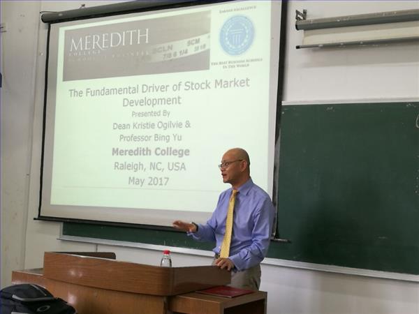 学生举办了一场精彩的英文讲座——“股票市场发展的终极动力”。