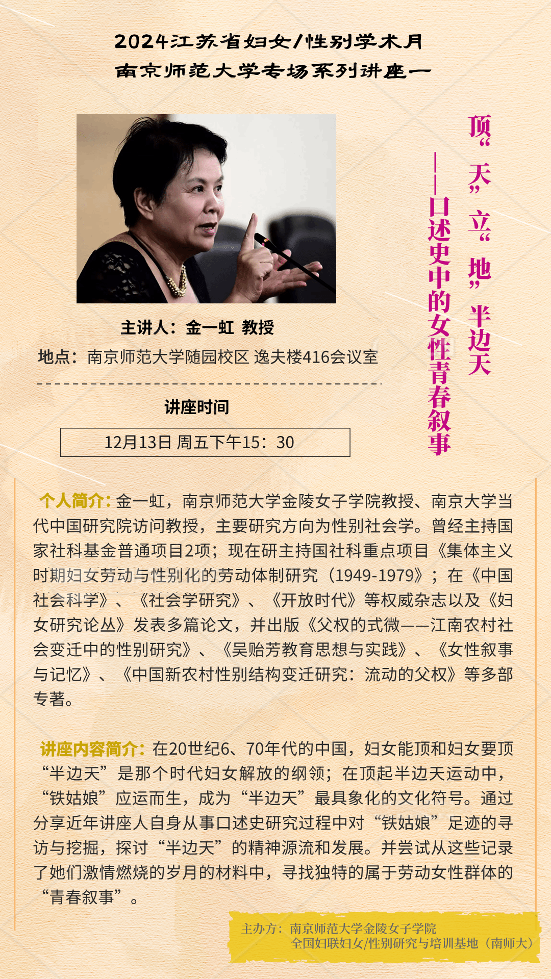 妇女/性别学术月讲座预告:顶“天”立“地”半边天 ——口述史中的女性青春叙事