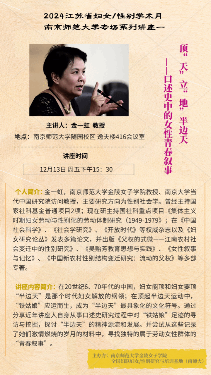 “妇女/性别研究学术月”系列讲座(一):顶“天”立“地”半边天——口述史中的女性青春叙事
