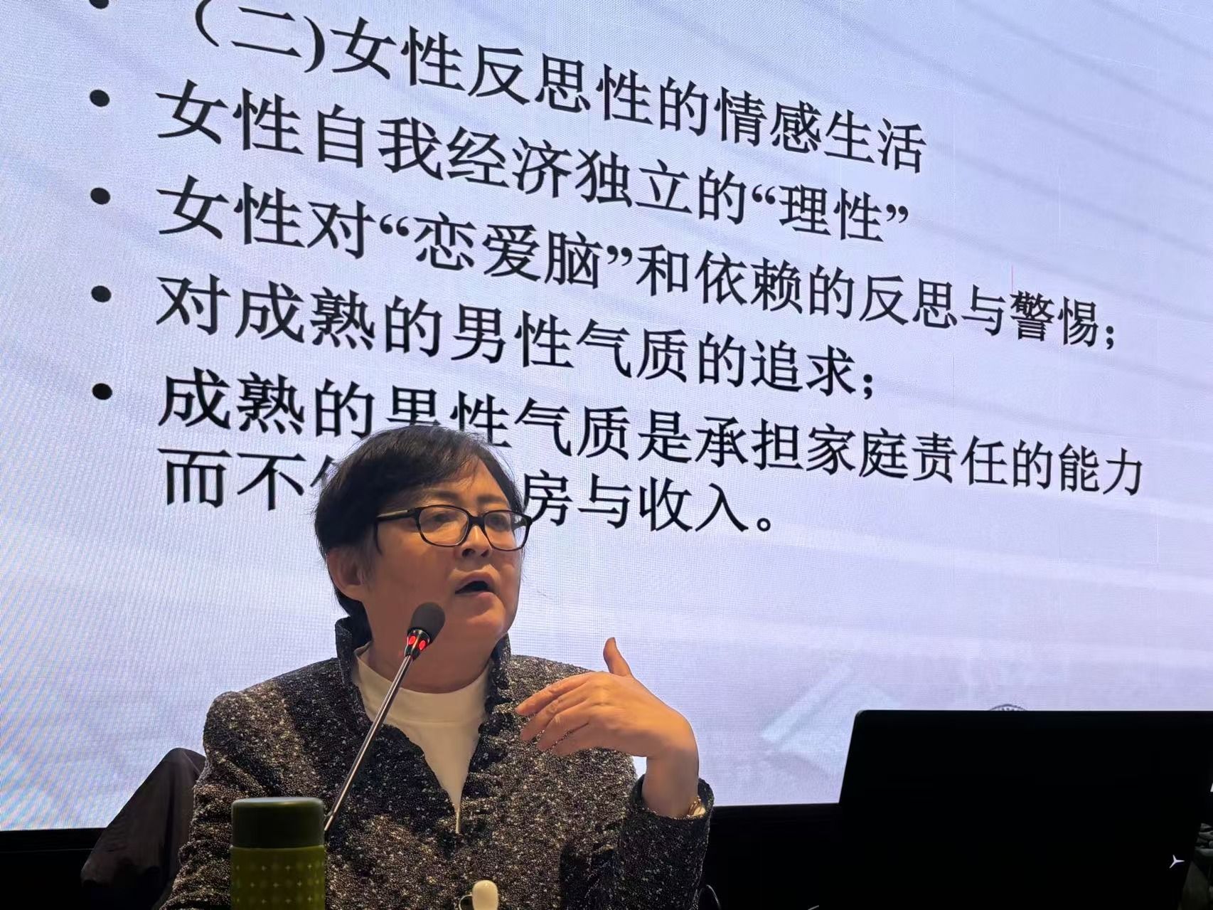 佟新教授此次讲座的主要聚焦现代社会女性关注的爱与独立的议题,从个体化社会的情感困境入手,从传统社会的爱情模式:父权制与性别气质到现当代的承诺恐惧:反抗父权制与父权制的生产与再生产,梳理父权制、爱与女性独立之间的复杂纠葛,探讨承诺幸福的可能性:建立独立自主的道德。
