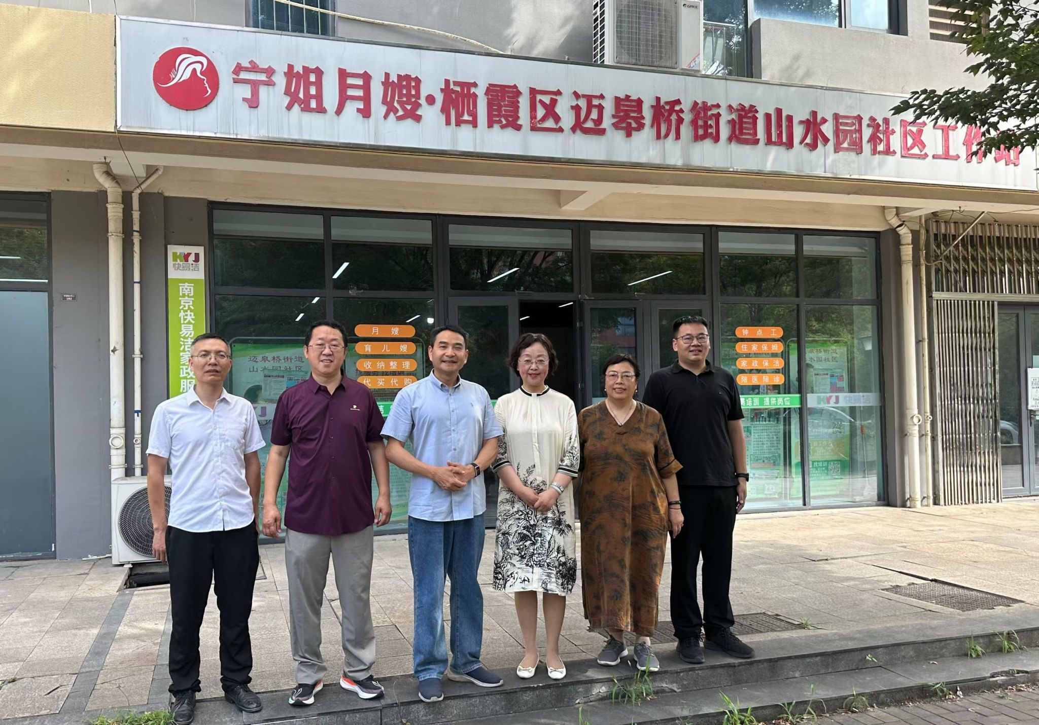 调研组首站来到栖霞区迈皋桥街道山水园社区,在社区书记刘超男等陪同下,实地考察了宁姐月嫂·栖霞区迈皋桥街道山水园社区工作站、社区党群中心及社区老年学校等,并与社区工作人员展开深入交流。赵媛教授指出,家政服务作为到家服务,既需要规范化、品牌化带来的高水平服务,也离不开便捷性、可及性的高效率服务。推动家政服务进社区,正是打通服务“最后一公里”、提供高效率服务的关键举措。她提出,劳模创新工作室建设需立足社区实际,将其打造成为传承劳模精神、劳动精神、工匠精神的“新阵地”、满足社区居民高品质家政服务需求的“新平台”。