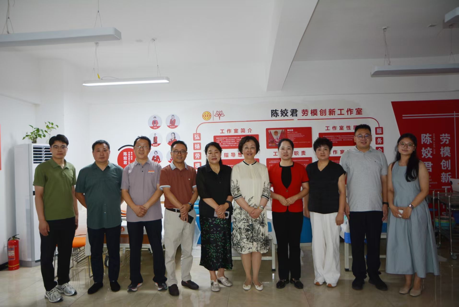 在郑州爱子缘母婴护理中心,公司总经理张桂勤带领调研组参访了“张桂琴劳模工匠创新工作室”、教学化场景实操间等,详细介绍了劳模工匠创新工作室建设及开展活动情况,以及客户服务、运营管理、员工培训、课程管理等15项管理体系。双方还围绕家政行业劳模创新工作室建设、家政管理体系建设与技能培训等展开深入交流。