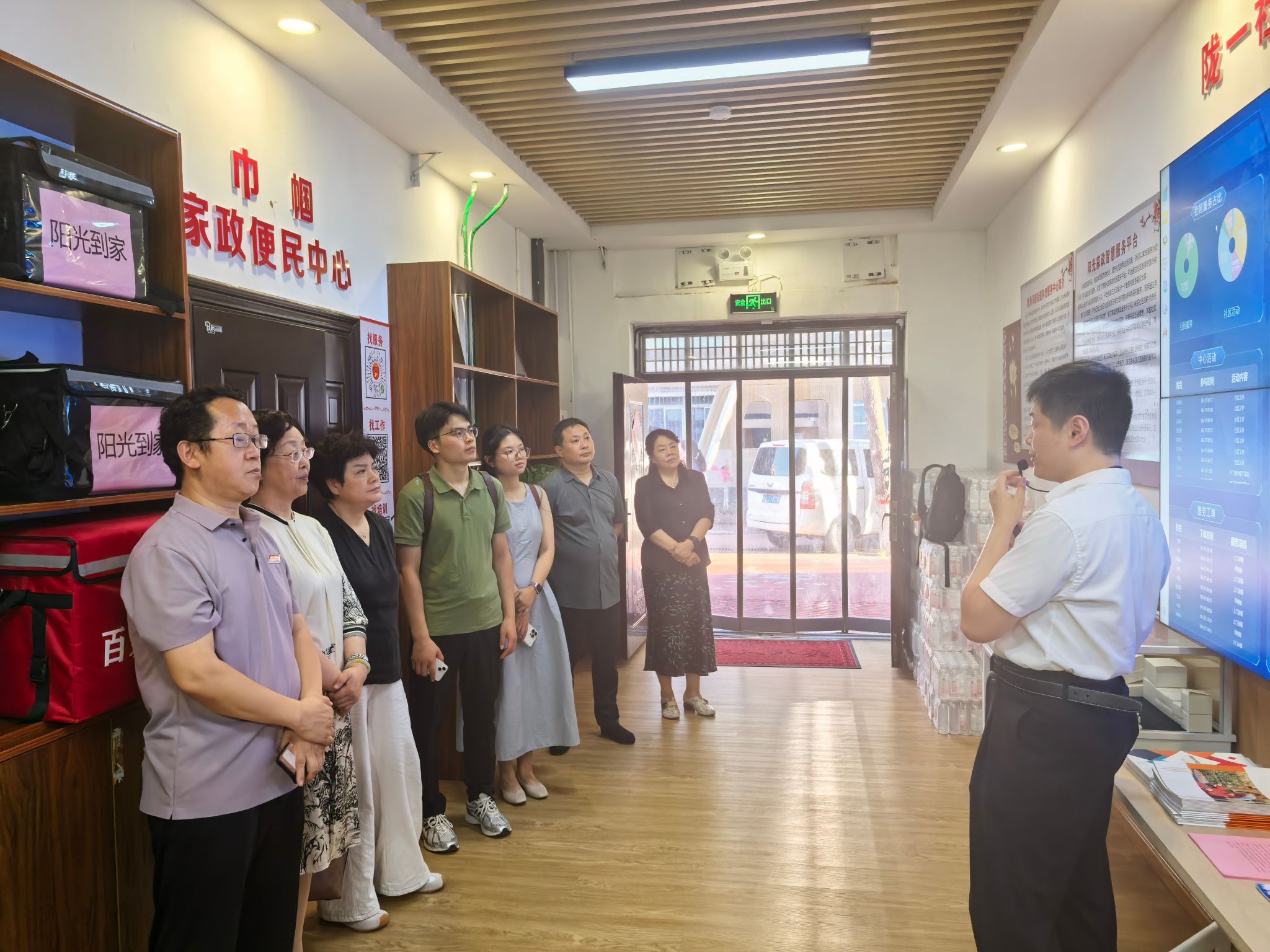 在河南天天阳光集团负责运营的陇海马路街道养老服务中心,河南天天阳光集团董事长王瑜、郑州阳光家政服务有限责任公司总经理武邑威带领调研组参访了养老中心的智慧化服务信息平台、家政服务室、助老设施设备、社区助浴中心和“社区妈妈餐厅”等。调研组来到二楼的托养中心,与正在那里娱乐的老人们进行了亲切交谈,询问大家的日常生活情况。王瑜董事长详细介绍了养老中心的“家政+养老”融合服务发展新模式。该中心不仅注重入住老人的服务质量,更加关照社区居家老人的各项需求,以“1+N+20”“社区养老+居家养老+家政服务”的模式,为老年人营造一种专业、温馨、舒适、快乐的养老环境。参访结束后,双方围绕“家政+养老”融合发展、弘扬劳模精神、家政产教融合与劳务品牌打造等开展座谈,河南天天阳光集团主要负责人及多位劳模工匠代表参加座谈会。