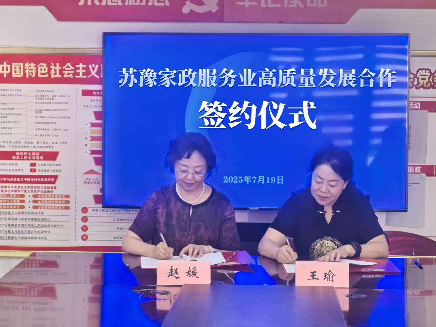 会上,江苏省家政学会与河南省家庭服务业协会举行“苏豫家政服务业高质量发展合作协议”签约仪式,赵媛理事长、王瑜会长签署协议。双方未来将通过深化产教融合、联合开展调查研究、协同制定服务标准、共建培训体系等举措,合力推动苏豫家政服务业高质量发展,切实满足人民群众多层次、高品质的家政服务需求。此外,南京市家庭服务业协会分别与郑州市、鹤壁市、周口市家庭服务业协会签订了“跨区域劳务合作协议”。