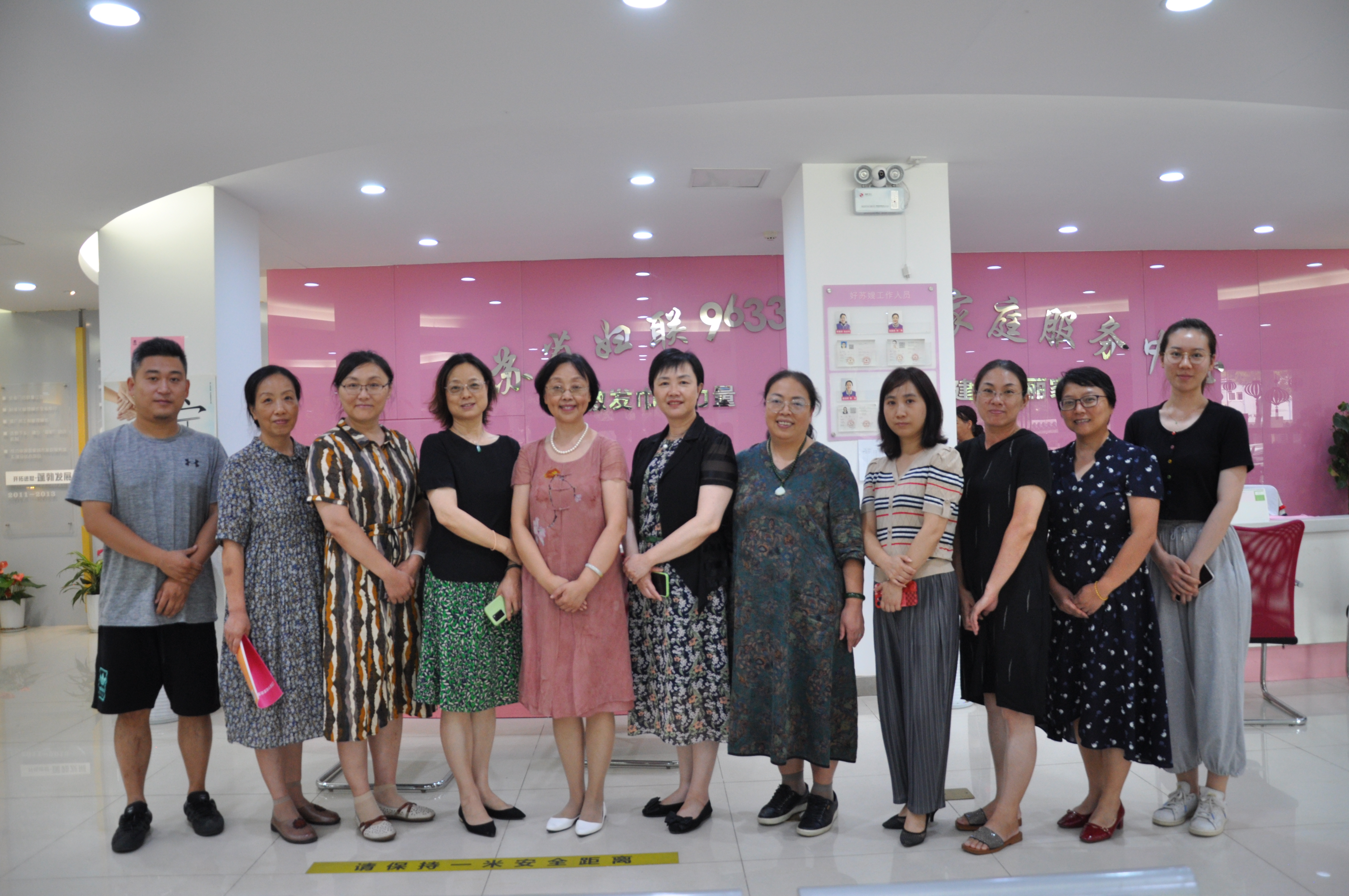 李芸、王佩、高爱芳、徐耀缤等前往位于南京市建邺区莫愁湖西路的江苏省好苏嫂家庭服务有限责任公司调研。公司总经理傅九梅、财务部负责人冯芳、市场部负责人李莉、行政部负责人郝梦浩一起参与此次调研活动。