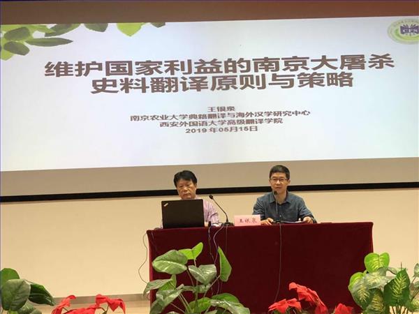 的师生带来了一场题为“基于维护国家利益的南京大屠杀史料翻译原则与策略”的精彩学术讲座。这是金女院主办的贻芳讲坛的第二期学术报告,讲座由金女院副院长韦清琦教授主持,本院师生以及来自南师其他院系乃至外校的师生参加了本次讲座。