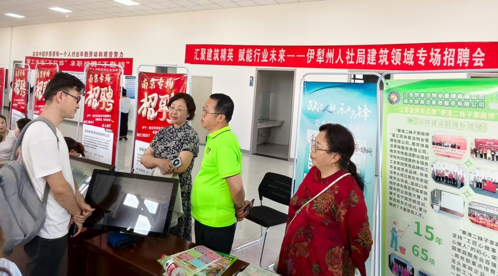 8月13日,调研组参加了由南京市人社局、伊犁州人社局联合主办,伊宁市人社局承办的“2025年度宁·伊对口支援劳务协作专场招聘会”。南京快易洁家政集团等来自南京的21家企业带来了涵盖制造业、服务业等多个领域的就业岗位。