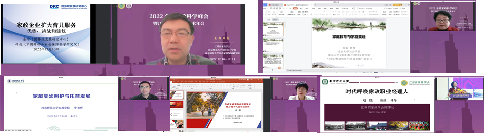 12月11日上午,峰会进入分会场报告研讨阶段。本次峰会共设置四个分会场,分别以婴幼儿照护、家政教育、家政服务业、江苏省家政学会课题结项为主题。来自全国各地的家政学领域研究专家、家政服务行业代表以及家政学等相关专业研究生,围绕如何建设完善养老服务和婴幼儿托育体系,如何推动家政学学科建设,如何促进家政服务规范化标准化等问题,将理论研究和案例分析相结合,提出诸多 极富价值的发展策略和研究视角。